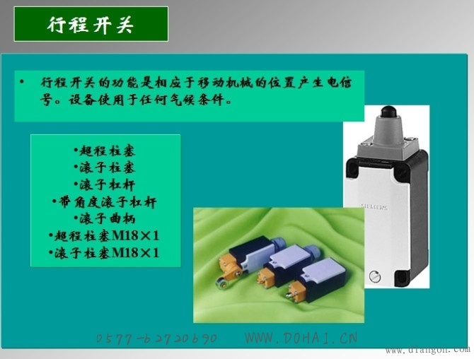 4、控制按钮 代号:SB或AN控制按钮按用途和触头的结构不同分停止(常闭按钮)、起动按钮(常开按钮)和复合按钮(常开和常闭组合按钮)。按钮的颜色有红、绿、黑等,一般红色表示“停止”,绿色表示“起动”。(隔离开关版权所有)接线时红色按钮作停止用,绿色或黑色表示起动或通电。