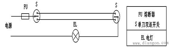 如上图所示.这种方式用于需两地控制时,如楼梯上使用的照明灯,要求在楼上、楼下都能控制其亮灭。安装时,需要使用两根导线把两只单极双联开关连接起来。